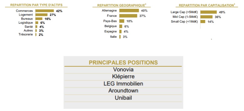 Cet OPCVM est géré activement et de manière discrétionnaire. Il est investi à 75 % minimum en valeurs immobilières et foncières de l’Union Européenne.