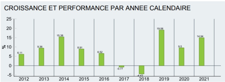 ● Performance cumulée : +94.99% (depuis 2014), performance arrêtée au 25 avril 2022.